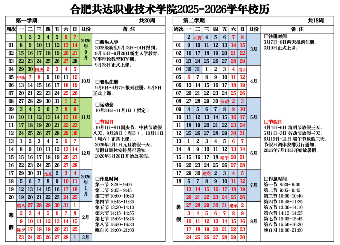 2025-2026学年校历